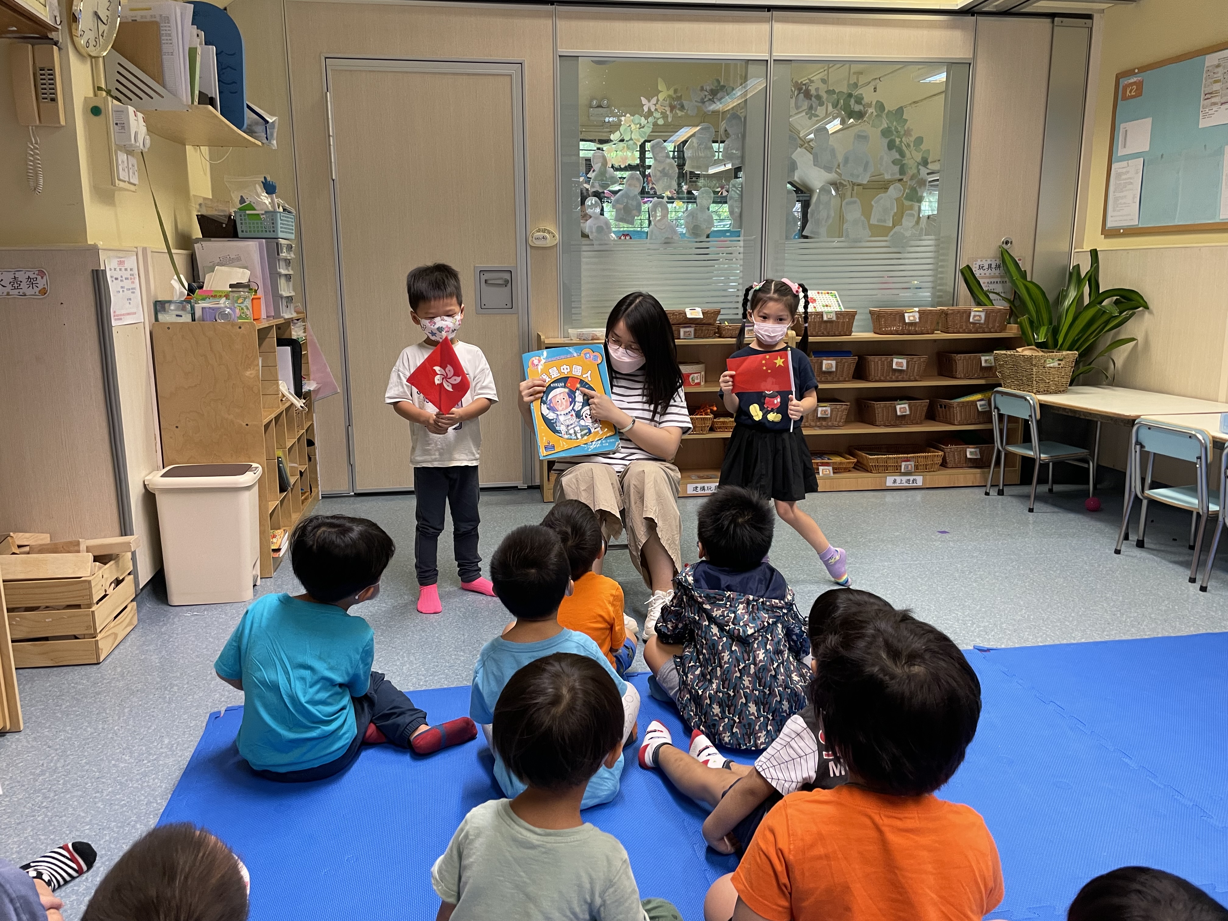 2. 透過故事、進行升旗禮、新聞分享等,增加兒童對國家的歸屬感,認同國民身份。在奏唱國歌及升旗禮時,持認真態度進行升旗「注目禮」。
